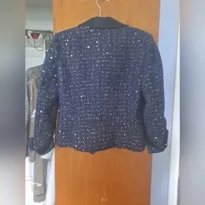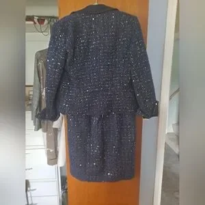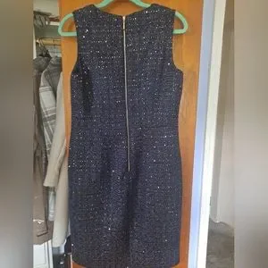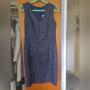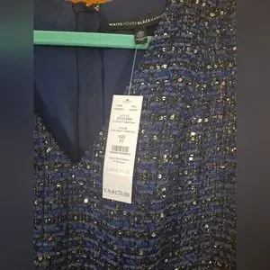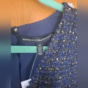 NWT White House Black Market navy blue tweed jacket and dress with beautiful gold accents. Denim collar and sleeve cuffs. Can be worn together or separately.