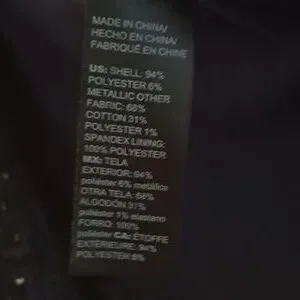 Color: Navy Blue with gold sequins, gold buttons, and gold zippers.