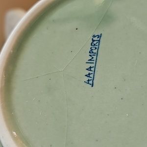 AAA Imports Ceramic Green Blue Floral Chinoiserie style Planter Pot. Interior is unglazed. Exterior glaze has cracks/crazing and small scratches in glaze as pictured.