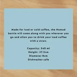 Made for iced or cold coffee, the Nomad bottle will come along with you wherever you go and allow you to drink your iced coffee with a straw.