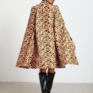 Multicolor Preppy Womens Leopard Print Cloak Sleeve Open Front Cape Coat