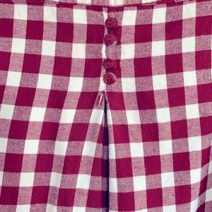 This Concrete Streets Red & White Checkered Flannel shirt has a pointed collar, patched chest pocket, button up front. Long sleeves with double button cuffs. Back has unique button detail as shown. New without tags!