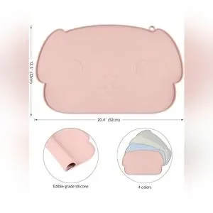 Cat Dog Food Mat, Enlarge and Thickened Silicone Pet Mat to Prevent Food and Water Leaks, Non-Slip & Waterproof Cat Food Mat, 20.4 * 12.5 inches, Pink