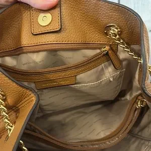 Michaels Kors Brown Pebbled Leather Soft supple cognac shoulder bag purse