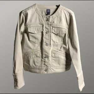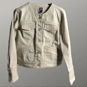 Gap khaki denim jacket with Mandarin collar.
