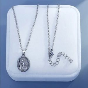 “Our Lady of Graces” Virgin Mother Mary of Guadelupe Miraculous Medal Devotion Sacred Heart Catholic Christian Holy Saint Pray Faith Silver Stainless Steel Double-Sided Necklace.