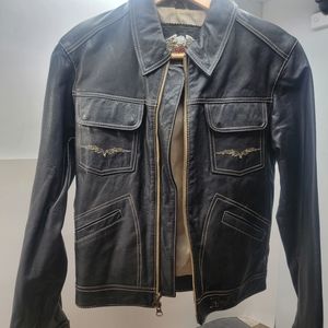 Women's Black Leather Jacket Harley Davidson Small