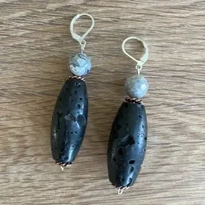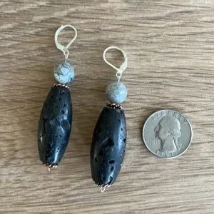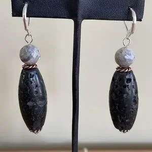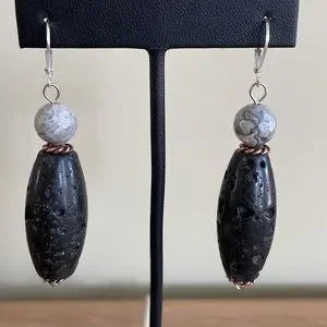 HAND CRAFTED EARRINGS Blackstone Gray Agate Copper Silver