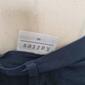 Katies Navy Blue Linen Blend Button Down Midi Skirt Vintage 90s Size 16