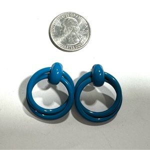 Vintage Azure Blue Double Hoop Earrings Door Knocker Look Retro 1980s