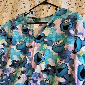 Sesame Street Cookie Monster scrub top, size XL