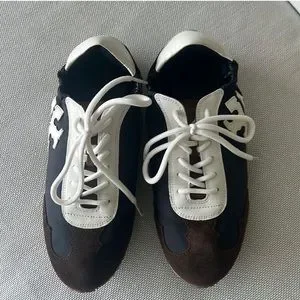 Never worn! NWOT Tory Burch Sneakers Size 8. Black, Brown and White color scheme. Calfskin, suede and nylon upper. Rubber bottom.