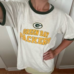 Green Bay Packets vintage NFL t shirt! Sizes men’s large. In great pre owned condition. Binded green collar and cuffs/ green trim. Can be dressed up or down!