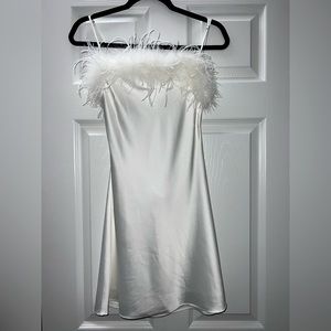 Cotton Candy LA White Feathered Dress - Small. Bought for bachelorette but never worn! Size small, silk material with feathers and open tie back.