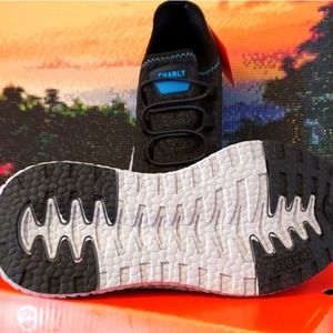 This style has a breathable mesh upper with adjustable elastic laces and flexible collar that makes it easy slip-on entry.