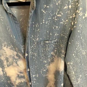 Frank & Eileen Relaxed Button-Up denim shirt; Indigo Splatter Dye; women’s sz M