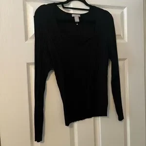 🖤H&M Black Ribbed Long Sleeve Sweetheart Neckline Top Winter Fall Size Medium🖤