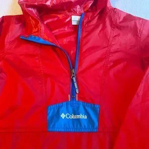 Columbia Boys Kids Wind Breaker Jacket Red Youth 14/16 Blue mesh lining