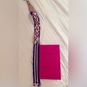 Multicolor woven Valentino bag strap with silver-tone clasp hardware closures, tan leather trim and Rockstud accents. I purchased a few years ago but never ended up using it.