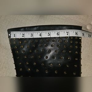 Rare, Never worn Monica Chiang Thigh High Over the Knee Black Leather Gold Studs Spikes Covered Wedge Boots Size 40.