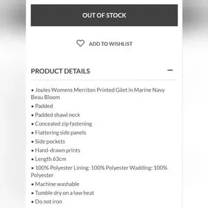 VGC Joules Merriton gilet RRP £55, fits UK size 8-10, quilted floral body warmer