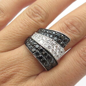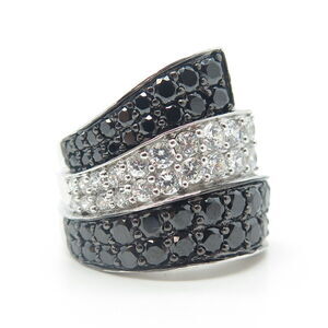 925 Sterling Silver White & Black C Z Ring Size 8.75