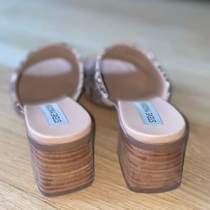Steve Madden ALESSIA SNAKE-PRINT MULE SANDALS IN TAN SNAKE