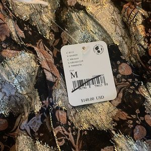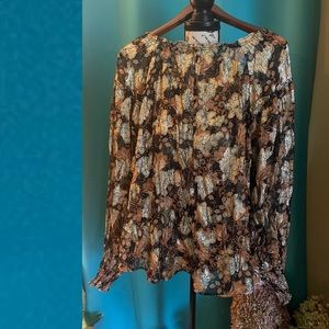 New Woven Top Button Shirt Blouse Long Sl Metallic Accents Semi Sheer M Beautiful and Trendy