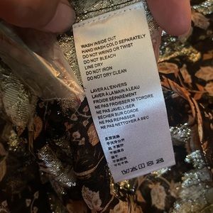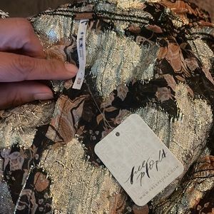 New Free People Woven Boho Top Button Shirt BlouseGold Accents Long Sl S Floral