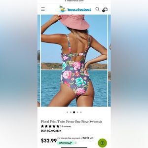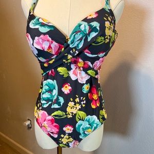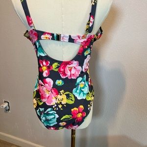 women’s size L new foral beach, swimsuit, one piece, claps in back.