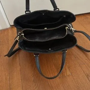 Kate Spade beautifully classic and elegant tricompartment purse. Perfect for professional and work settings with the interior pockets and sleek exterior design. Handles and shoulder strap included with gold hardware. Multifunction, durable, and never out of style. Previously loved but used only a handful of times.