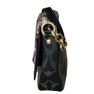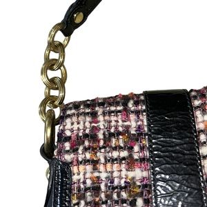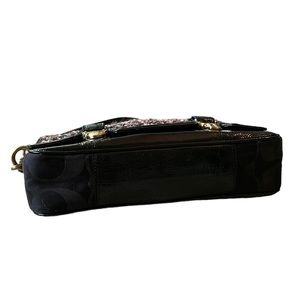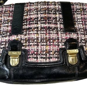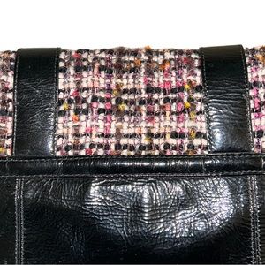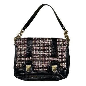 RARE COACH Poppy Tweed Black Patent Flap Shoulder Bag 17927
