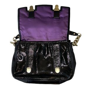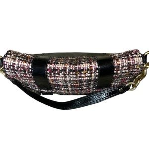 Tags: Chain strap detail fuzzy tweed patent leather messenger shoulder bag handbag purse vintage briefcase bag long curved handle strap east west