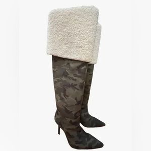 NWOB Good American High Kickstand Camo Over The Knee Boots