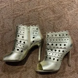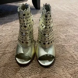 These are rare and oh so special. Gold laser cut ankle boots. Genuine leather. Never seen any like these before and post pregnancy feet dont fit them. Im not sure I ever got to wear these. They look like they have never been worn outside. Just beautiful for the right person!