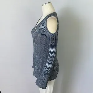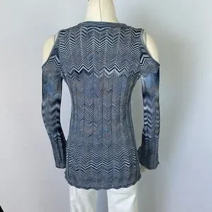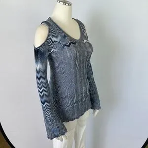 WHBM Blue Zigzag Open Shoulder Sweater X Small