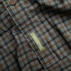 Orvis Button Up Shirt Mens Large Blue Green Flannel Outdoor Pocket Long Sleeve