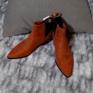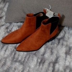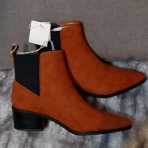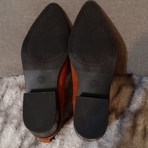 Size 7 brown booties featuring black elastic top, loophole in the back to aid in inserting your feet. Small "heel". Beautiful and ready for fall 🍁 Questions just ask offers welcome and bundle to save.