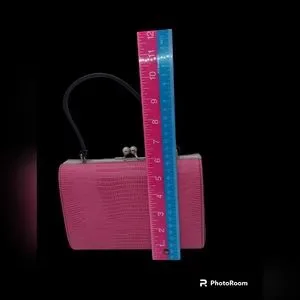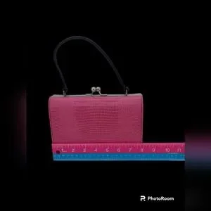 Unbranded Pink Textured Small Handbag in very good used condition. This would be great for a night out. The interior doesn't have any pockets. The silver trim has minor scuffing.