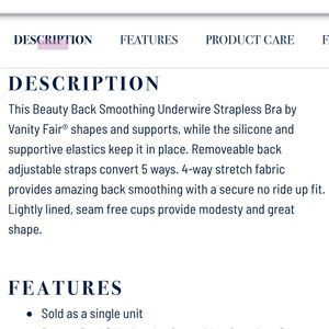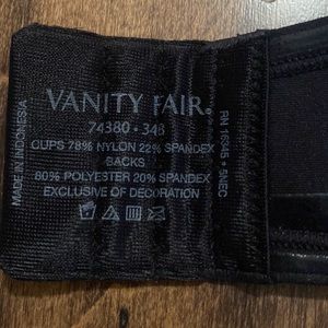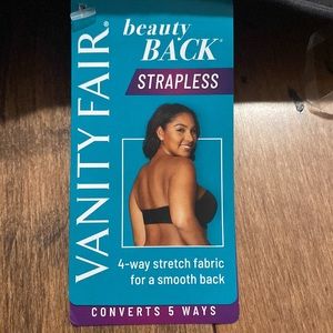 NWT VANITY FAIR 74380 Beauty Back Strapless Underwire Bra Women’s Black Size 34B