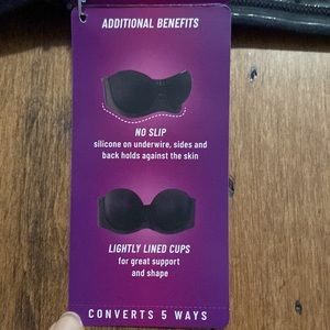 Removable, back adjustable straps convert 5 ways to traditional, halter, criss cross, one shoulder and strapless