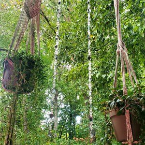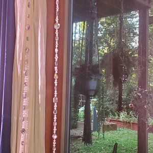 These pieces are hand crafted, and each strand varies. Strung using monofilament and a variety acrylic gemstones and beads of different sizes. While there is a moderate loop at the top for you to hang in different ways, I've added metal curtain hooks so you can hang them straight away.