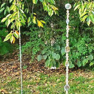 Add sparkle and fun to your indoor or outdoor spaces with these handmade suncatchers. The dancing lights from the mirror-like faceted acrylic gemstones and beads blowing in the breeze scatter across the garden, walls or floor from morning light to evening sunset. Even inside, the 5 suncatchers move about bringing light and calming movement to any room. They can be hung separately, all together or anyway you like.