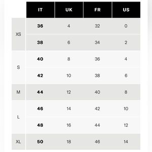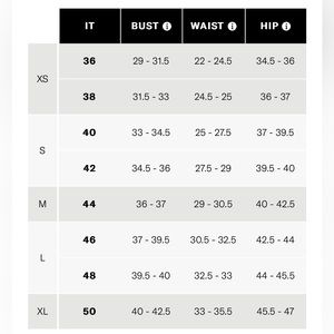 Sizing charts in the photos