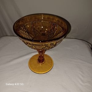 Vintage Amber Indiana Glass Compote Candy pedestal Dish Bowl. 6. 75" tall 6"wide