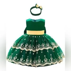🤩 NEW ITEM! Green and Gold Toddler Girl Christmas dress