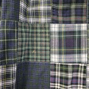 Size Medium. Multicolored plaid in a patchwork design. Great for the dorm or lounging around on rainy days. Shows some bleach specks, see photo. Good, preloved condition