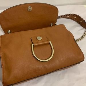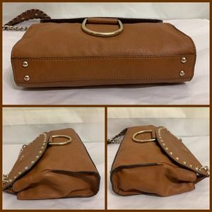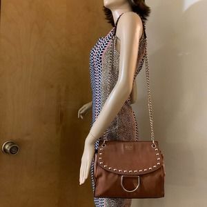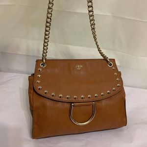 GUESS Large Acorn Brown Vegan Leather Studded Flap CHAIN CROSSBODY