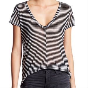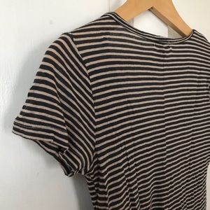 Soft & lightweight grey and tan stripes, soft rayon/linen. No flaws. Excellent Pre-loved Condition