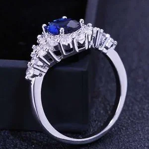 "Noble Oval Flower Dainty Royal Blue 925 Silver Ring for Women, VIP500